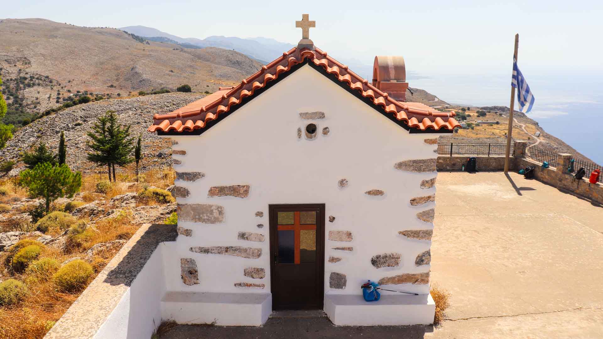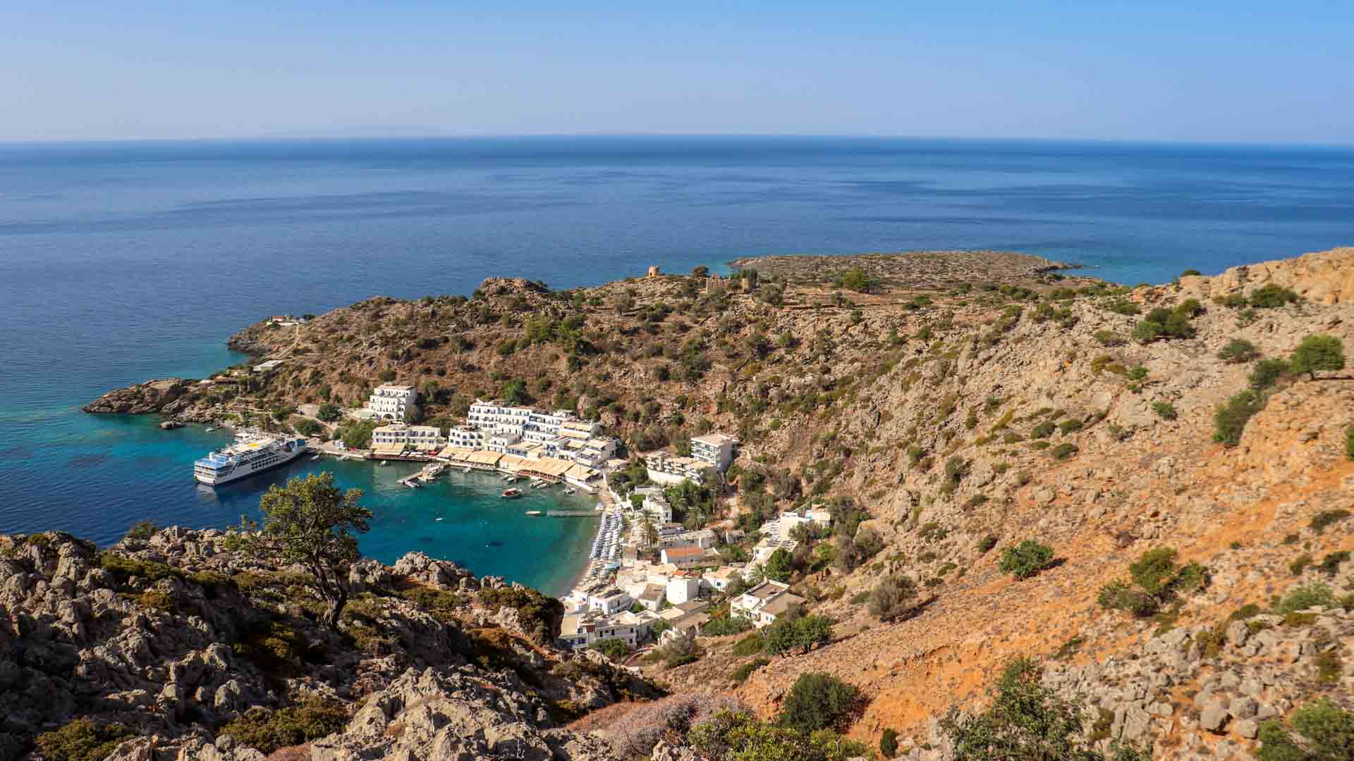 Καθώς ανεβαίνουμε, η θέα του Λιβυκού Πελάγους απλώνεται προς τον ορίζοντα και γίνεται ολοένα και πιο εντυπωσιακή, με το νησί της Γαύδου να δεσπόζει στον ορίζοντα. Μόλις φτάσουμε στην κορυφή, στο εκκλησάκι της Αγίας Αικατερίνης, και σε μικρή απόσταση με τα πόδια, θα φτάσουμε στην πλατεία του χωριού, όπου το λεωφορείο μας θα μας μεταφέρει στη Χώρα Σφακίων και στη συνέχεια στα Χανιά.