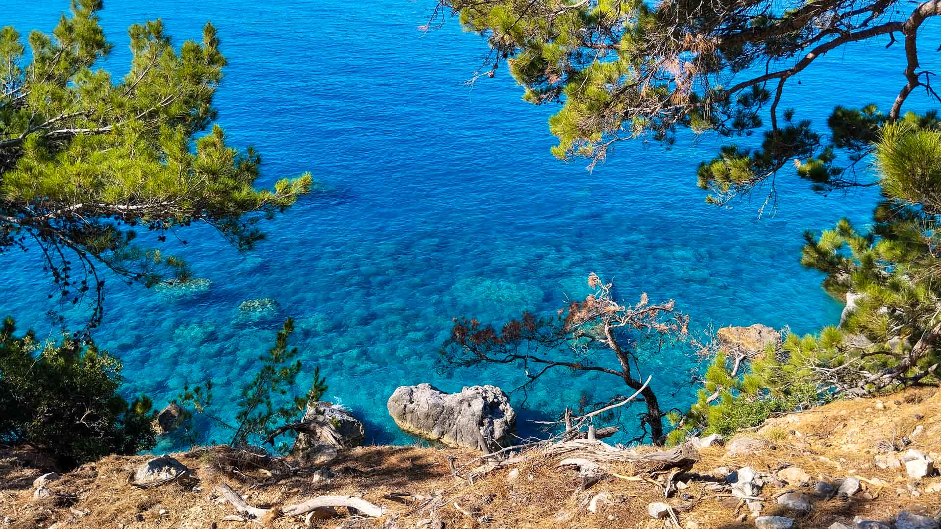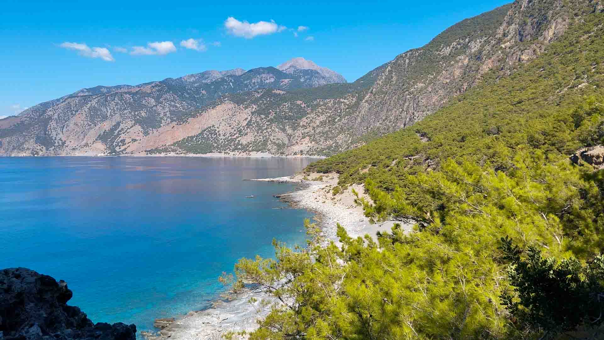 Το ταξίδι συνεχίζεται με το παραθαλάσσιο μονοπάτι Αγίας Ρουμέλης – Λουτρό. Μια πεζοπορική διαδρομή που αναδεικνύει την απόλυτη απομόνωση της Νότιας περιοχής των Λευκών Ορέων.
